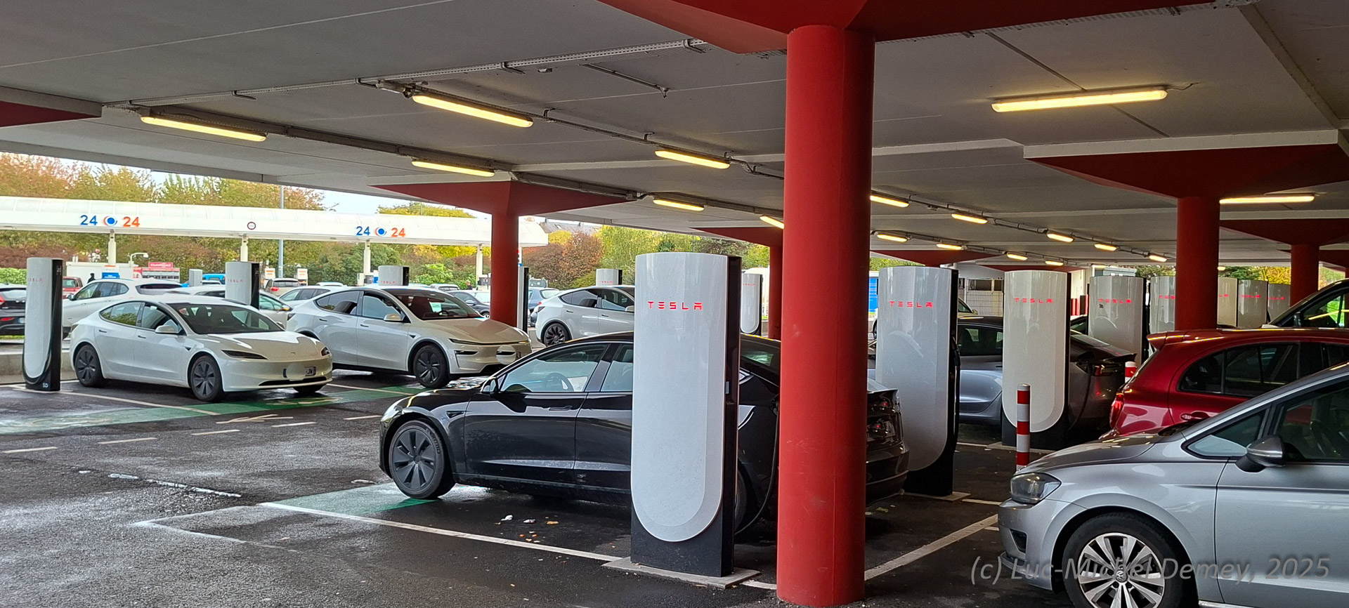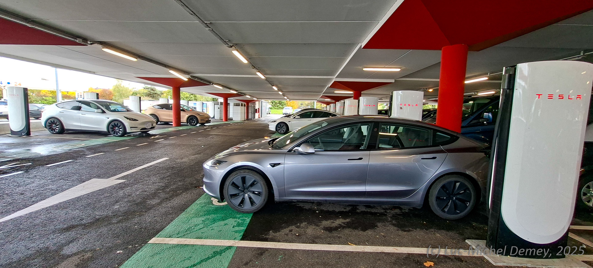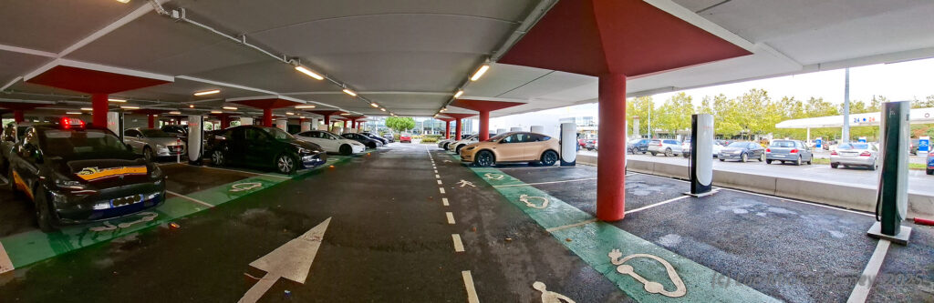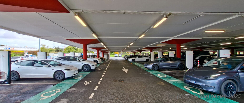 FR – Ille-et-Vilaine | Bornes : 20 x V4 | Page Supercharger Tesla | A l’ouest de Rennes, tout près du périf, sur le parking du CC Leclerc (partie couverte) | MàJ 2025-10